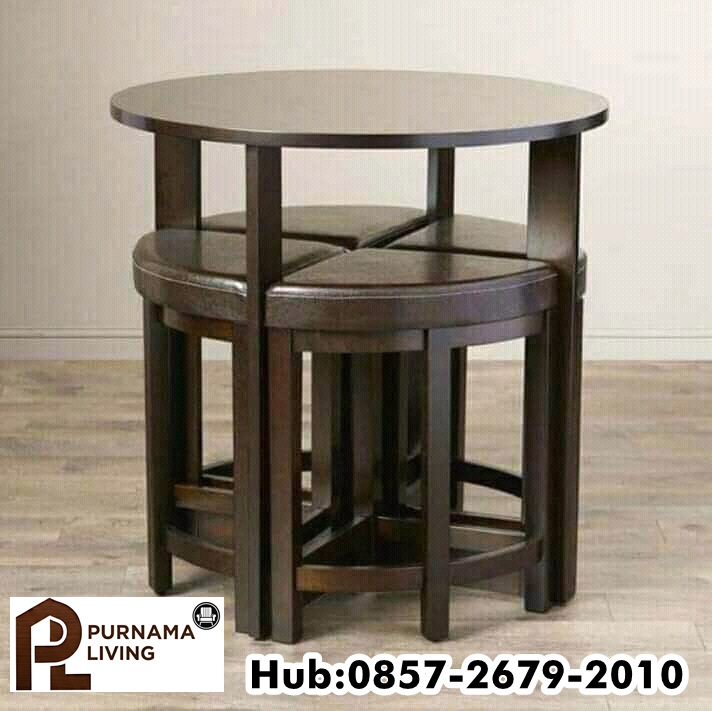 Meja: Bulat 36″ x Tinggi 36″, Kursi: 23″ x 16″ x 24″