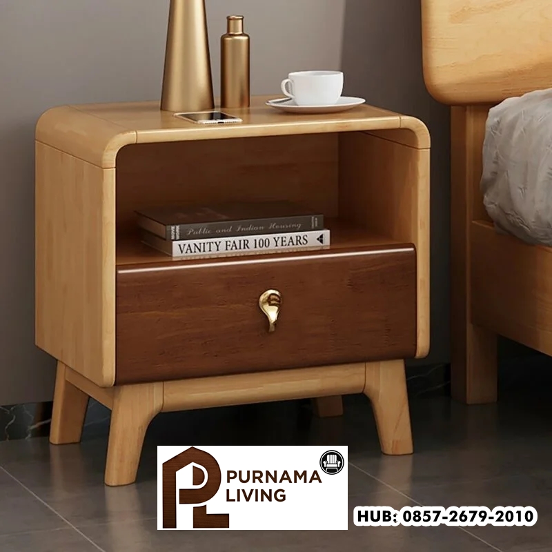 Meja Nakas Minimalis Lilia ini akan memberikan nuansa modern dan unik untuk kamar Anda. Untuk meningkatkan kapasitas penyimpanan di samping tempat tidur, meja ini dilengkapi dengan ruang terbuka dan laci yang memiliki pegangan kayu yang menarik. Dengan desain kokoh yang ideal untuk menampung lampu, ponsel, dan segelas air, meja ini memenuhi segala kebutuhan penyimpanan Anda. Terbuat dari kayu solid, produk ini memiliki satu laci yang terletak di papan luncur kayu, menawarkan space penyimpanan yang tersembunyi, serta rak terbuka di bagian bawah yang memungkinkan Anda untuk menampilkan barang-barang seni, majalah, dan lainnya.