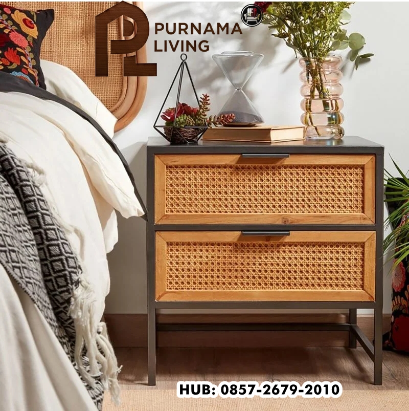 Meja Nakas Rotan Klasik Naoma, dengan sentuhan akhir yang mencolok dan panel anyaman rotan, merupakan tambahan yang menakjubkan untuk kamar tidur Anda. Kualitas tekstur panel rotan menghadirkan daya tarik visual pada meja nakas yang indah ini. Selain itu, perangkat kerasnya muncul dengan indah di atas lapisan kayu. Dua laci menawarkan penyimpanan samping tempat tidur yang nyaman. Kaki logam memberikan struktur dan kekuatan